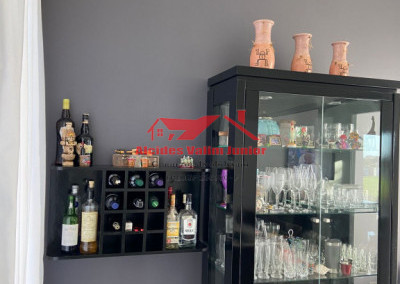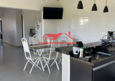 Sala : Sofá , Raque , 2 poltrona Sala de estar : mesa (8 cadeira ) , cristaleira , e adega Cozinha , fogão, 2 geladeira , microondas , cafeteira , sanduícheira , mesa (6 cadeira ) Coxão; 2 casal , 8 solteiro Quarto ; guarda roupa , 2 criado mudo , 2 cômodas, 2 casal , 1 bicama e 2 de solteiro Área de serviço: maquina de lavar 1 jogo de cadeira e mesa área lazer 2 butijao